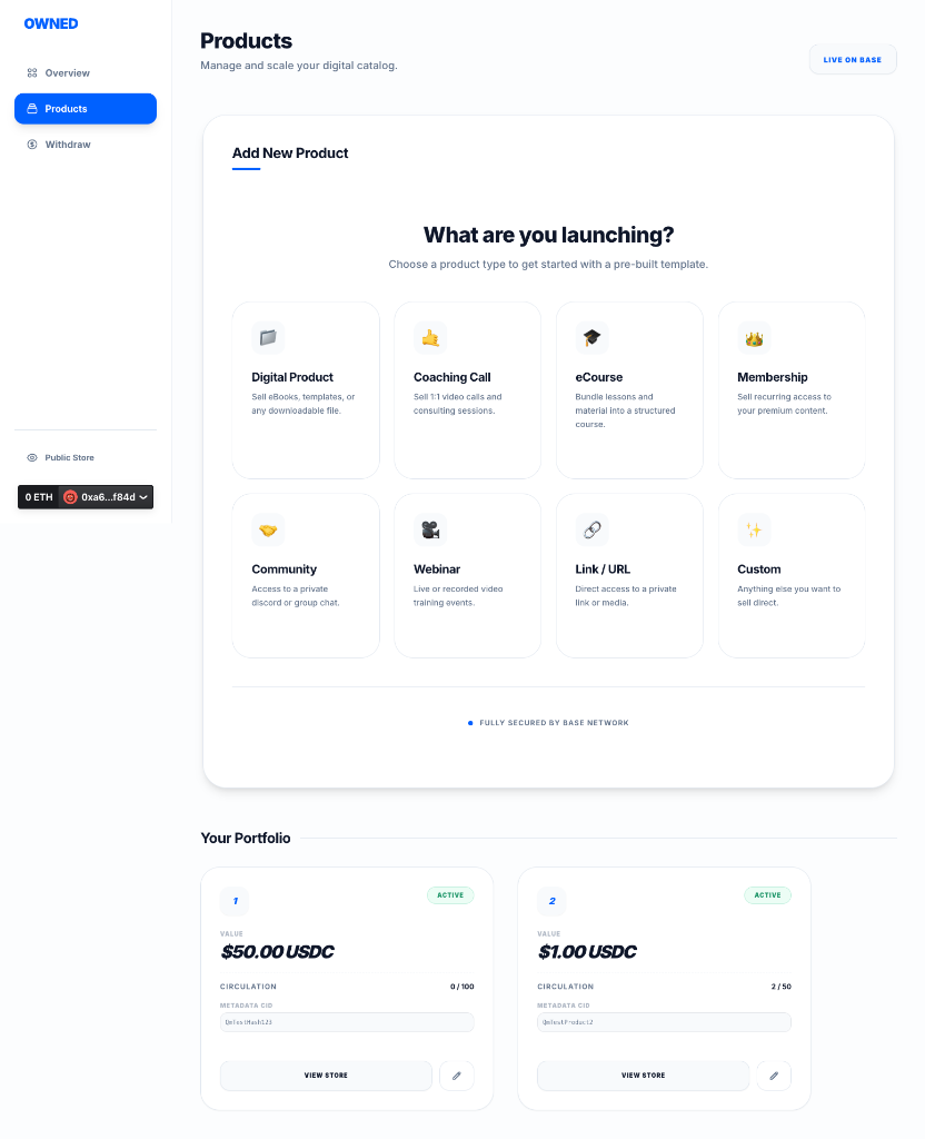 Effortlessly manage your digital products, coaching, and memberships with crypto-native simplicity. No subscriptions. No platform risk.